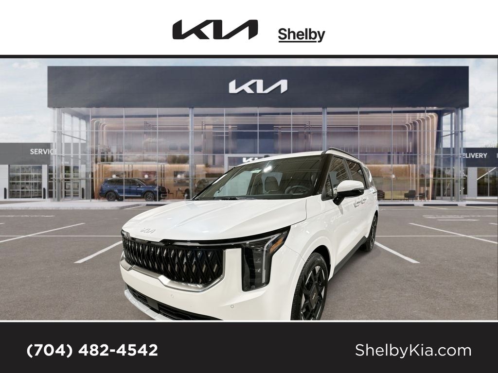 Check out this 2026 Kia Carnival EX available at Shelby Kia of Shelby, NC. Offered at just $41389, this Kia Carnival won’t last long. This FWD Kia Carnival EX is powered by a V6 an includes these features and benefits 3.51 Axle Ratio, 3rd row seats: split-bench, 4-Wheel Disc Brakes, 8 Speakers, ABS brakes, Air Conditioning, Alloy wheels, AM/FM radio: SiriusXM, Apple CarPlay & Android Auto, Artificial Leather Seat Trim, Auto High-beam Headlights, Auto-Dimming Mirror with HomeLink, Automatic temperature control, Brake assist, Bumpers: body-color, Cargo Tray, Carpeted Floor Mats (8-Passenger), Compass, Delay-off headlights, Driver door bin, Driver vanity mirror, Dual front impact airbags, Dual front side impact airbags, Electronic Stability Control, Emergency communication system, Exterior Parking Camera Rear, Four wheel independent suspension, Front anti-roll bar, Front Bucket Seats, Front Center Armrest, Front dual zone A/C, Front reading lights, Fully automatic headlights, Heated door mirrors, Heated Front Bucket Seats, Heated front seats, Illuminated entry, Knee airbag, Leather Shift Knob, Leather steering wheel, Low tire pressure warning, Memory seat, Mud Guards, Navigation System, Occupant sensing airbag, Outside temperature display, Overhead airbag, Overhead console, Panic alarm, Passenger door bin, Passenger vanity mirror, Power door mirrors, Power driver seat, Power Liftgate, Power passenger seat, Power steering, Power windows, Radio: AM/FM/HD Audio System, Rear air conditioning, Rear anti-roll bar, Rear reading lights, Rear window defroster, Rear window wiper, Reclining 3rd row seat, Remote keyless entry, Security system, Speed control, Speed-sensing steering, Split folding rear seat, Spoiler, Steering wheel mounted audio controls, Tachometer, Telescoping steering wheel, Tilt steering wheel, Traction control, Trip computer, Turn signal indicator mirrors, Variably intermittent wipers, and Wheels: 7.5J x 19" Machine-Finished Alloy.