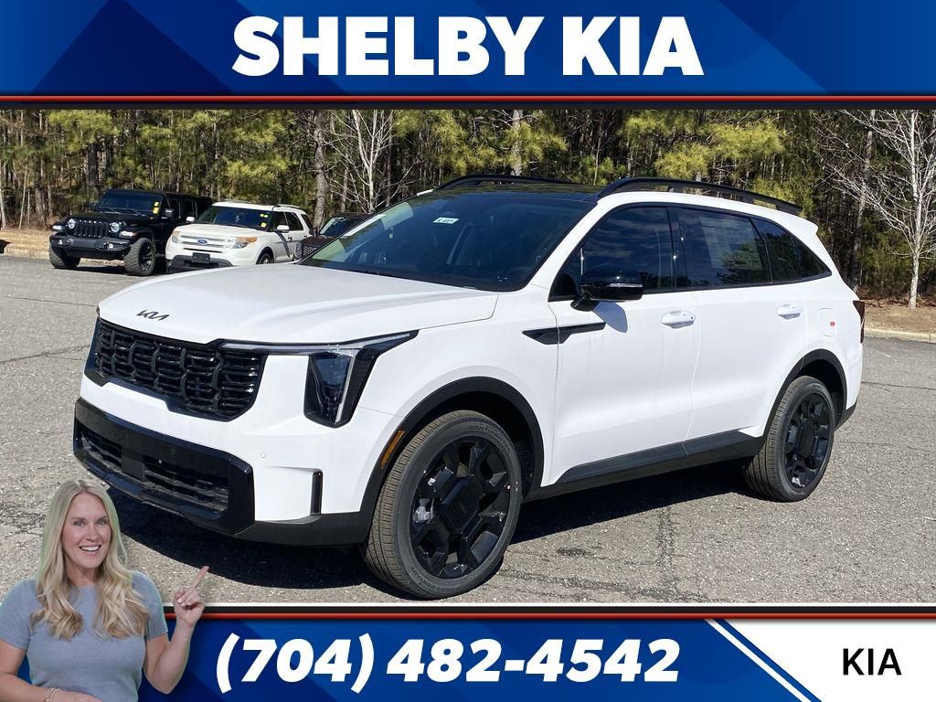 Check out this 2026 Kia Sorento X-Line EX available at Shelby Kia of Shelby, NC. Offered at just $40795, this Kia Sorento wonât last long. This AWD Kia Sorento X-Line EX is powered by a 2.5L I4 DGI Turbocharged DOHC 16V LEV3-SULEV30 281hp an includes these features and benefits 12 Speakers, 3rd row seats: split-bench, 4-Wheel Disc Brakes, ABS brakes, Air Conditioning, Alloy wheels, AM/FM radio: SiriusXM, Apple CarPlay & Android Auto, Auto High-beam Headlights, Auto-Dimming Mirror with HomeLink (PnP), Auto-dimming Rear-View mirror, Automatic temperature control, Brake assist, Bumpers: body-color, Carpet Cargo Mat with Seatback Protection, Carpeted Floor Mats, Delay-off headlights, Driver door bin, Driver vanity mirror, Dual front impact airbags, Dual front side impact airbags, Electronic Stability Control, Emergency communication system: 911 Connect, Exterior Parking Camera Rear, Four wheel independent suspension, Front anti-roll bar, Front Bucket Seats, Front Center Armrest, Front dual zone A/C, Front fog lights, Front reading lights, Front Skid Plate, Fully automatic headlights, Heated door mirrors, Heated Front Bucket Seats, Heated front seats, Illuminated entry, Knee airbag, Leather Shift Knob, Leather steering wheel, Low tire pressure warning, Navigation System, Occupant sensing airbag, Outside temperature display, Overhead airbag, Overhead console, Panic alarm, Passenger door bin, Passenger vanity mirror, Power door mirrors, Power driver seat, Power Liftgate, Power moonroof, Power passenger seat, Power steering, Power windows, Radio data system, Radio: AM/FM Standard Sound System, Rear anti-roll bar, Rear reading lights, Rear side impact airbag, Rear window defroster, Rear window wiper, Remote keyless entry, Security system, Speed control, Speed-sensing steering, Split folding rear seat, Spoiler, Steering wheel mounted audio controls, SynTex Artificial Leather Seat Trim, Tachometer, Telescoping steering wheel, Tilt steering wheel, Traction control, Trip computer, Turn signal indicator mirrors, Variably intermittent wipers, and Wheels: 20" Gloss Black x-Line Alloy.