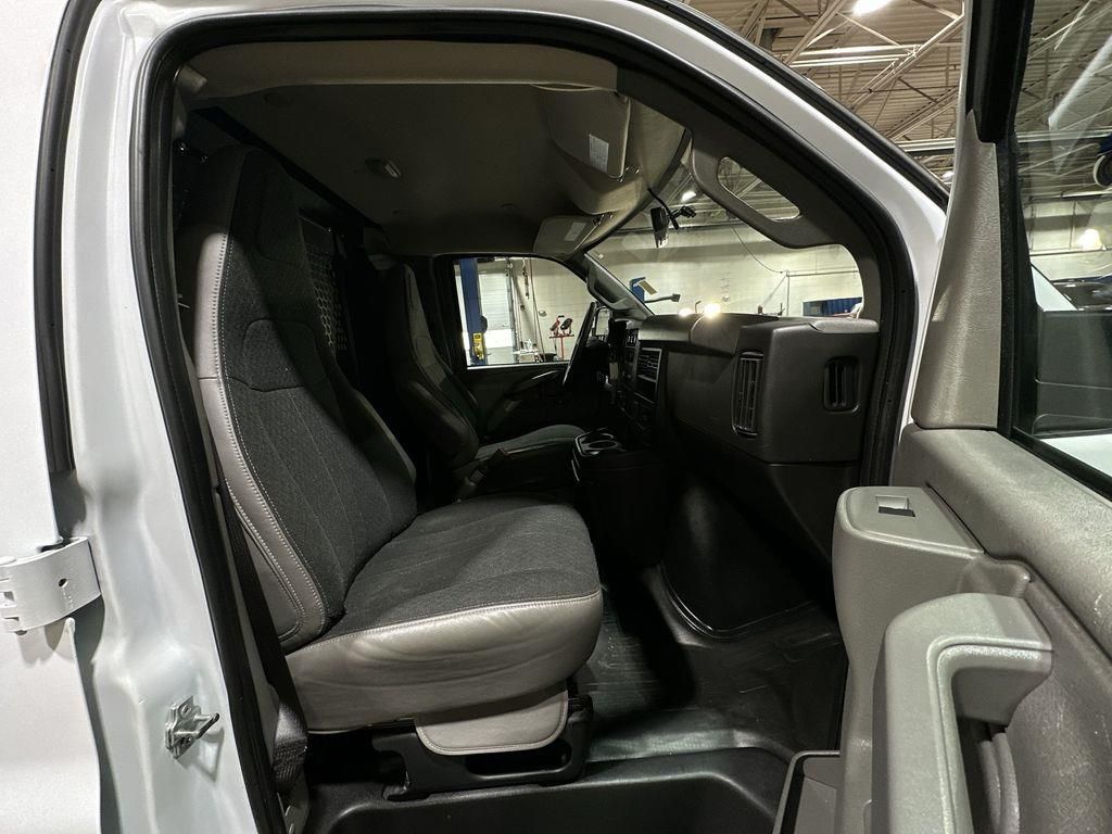 Inside, the Savana 2500 Work Van offers a comfortable and well-appointed cabin. The custom cloth-trimmed front bucket seats with inboard armrests provide all-day support, while the swing-out storage console keeps your essentials within reach. The driver's convenience package, including a tilt-wheel and cruise control, enhances your driving experience, allowing you to focus on the road ahead.
